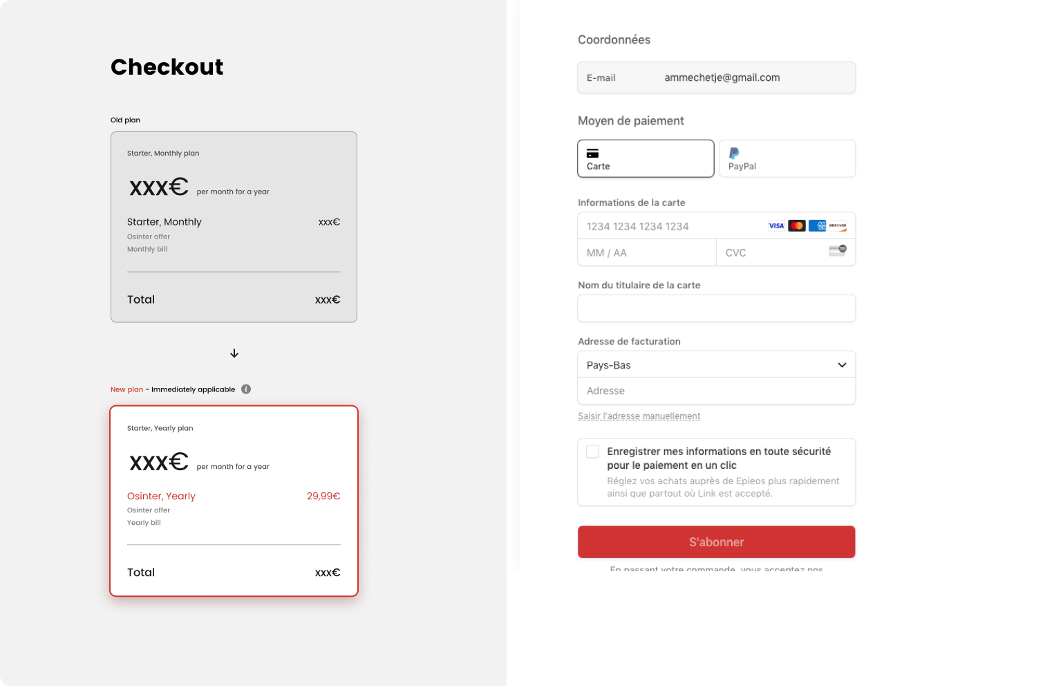 At Epieos.com, an OSINT search engine used by millions to retrieve online data from email addresses and phone numbers, I led the complete end-to-end redesign of the subscription and pricing experience.
