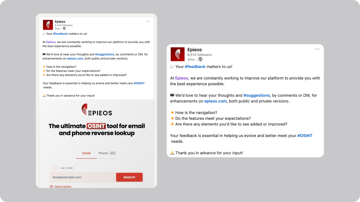 - Osinter: Power users working daily with Epieos